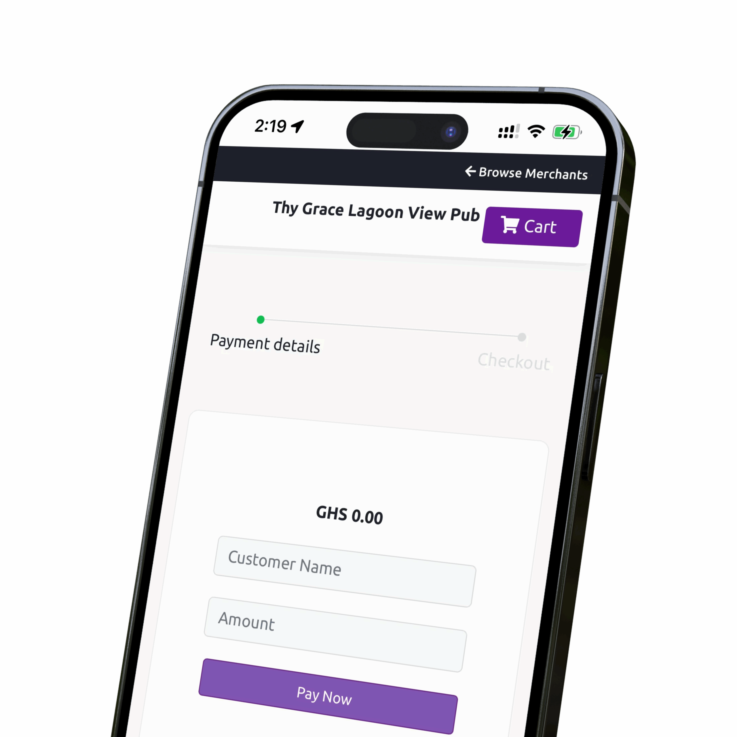 In-Store collection using the Mobile POS: Initiate payment from the mPOS and send payment authorization to customers to approve using their MOMO prompts (MTN, AT, Telecel)